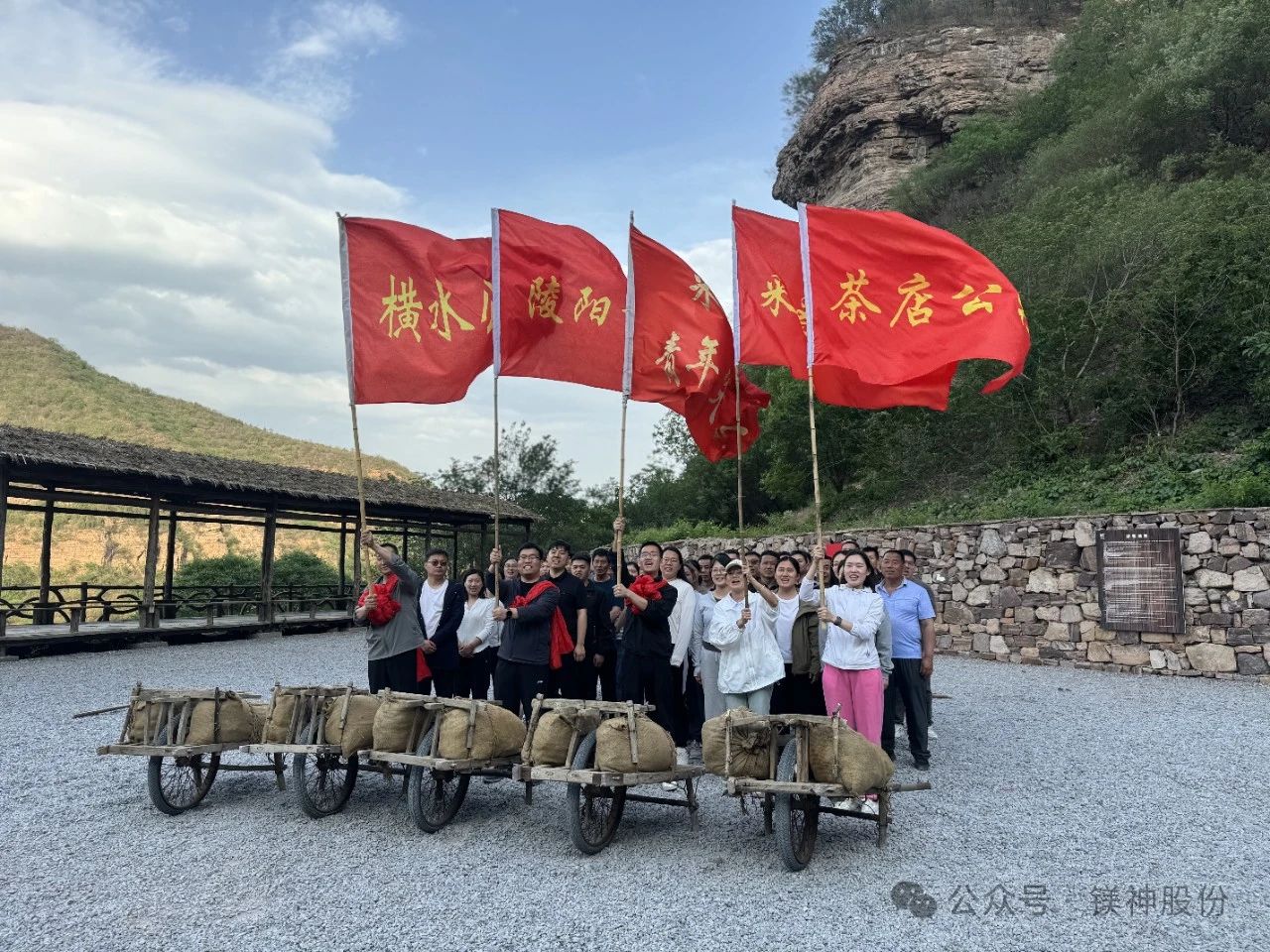 走出紅旗渠紀(jì)念館,大家開啟了徒步7.8公里前往紅旗渠青年洞的征程,沿著蜿蜒的渠道前行,腳下是堅(jiān)實(shí)的石板路,身旁是潺潺的渠水,頭頂是湛藍(lán)的天空,遠(yuǎn)處是巍峨的山巒。在徒步過程中,大家相互鼓勵(lì)、相互扶持,共同克服疲憊與困難。抵達(dá)青年洞時(shí),全體人員在黨旗下莊嚴(yán)宣誓,鏗鏘有力的誓言回蕩在山谷間,彰顯著鎂神人對(duì)黨的忠誠與為事業(yè)奮斗的決心。隨后,大家還親身體驗(yàn)了鑿山石、推獨(dú)輪車、打夯等當(dāng)年修渠時(shí)的勞動(dòng)項(xiàng)目。每一次揮錘、每一次推車、每一次夯打,都讓大家深刻感受到先輩們的艱辛與不易,也讓紅旗渠精神更加鮮活地銘刻在大家的心中。