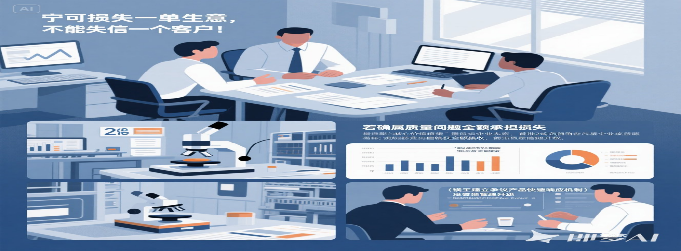 12月5日,鎂王公司召開了緊急會(huì)議。會(huì)議室里,氣氛凝重,大家都在討論著應(yīng)對(duì)方案。有提出讓第三方檢測(cè)的,但這個(gè)方案耗時(shí)7天,很可能會(huì)錯(cuò)過(guò)客戶的交期;也有建議先行補(bǔ)發(fā)合格品保障生產(chǎn),同步送檢厘清責(zé)任的。就在大家爭(zhēng)論不休時(shí),畢總一拍桌子,堅(jiān)定地說(shuō):"寧可損失一單生意,不能失信一個(gè)客戶!我們選擇先行補(bǔ)發(fā)合格品,這是我們的誠(chéng)信擔(dān)當(dāng)。